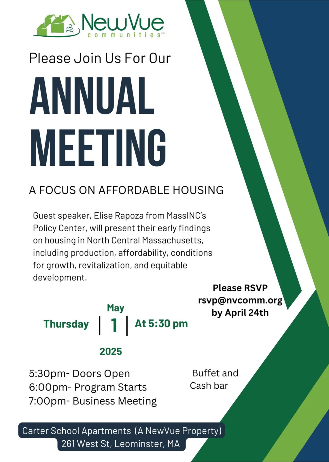 The Annual Meeting for NewVue Communities will take place on Thursday, May 1. Doors open at 5:30 p.m. Our guest... |